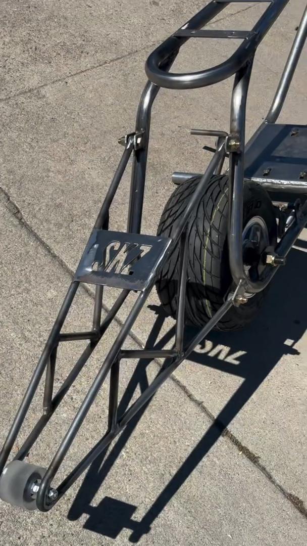 Constructed from heavy-duty steel tubing with precision welds, the SKZ frame delivers exceptional durability and rigidity. The extended rear section is designed to support aggressive launches, while the professionally built wheelie bars provide added control and balance when putting serious power to the ground.